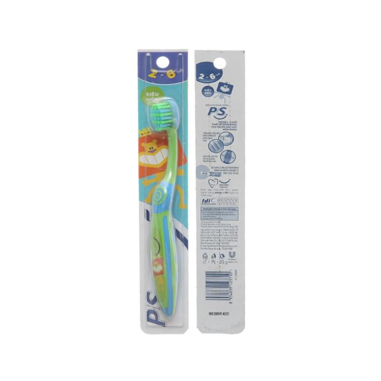 ⭐️ Công dụng: Bàn chải cho bé 2 - 6 tuổi P/S Kids lông siêu mềm với lông bàn chải siêu mềm giúp chăm sóc nướu và làm sạch răng một cách hiệu quả. Tay cầm được thiết kế bo tròn giúp các bé dễ cầm nắm.