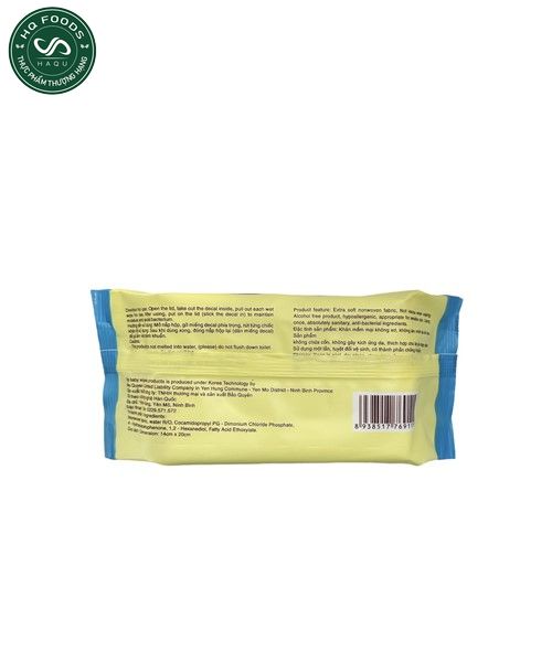 Mô tả: Khăn ướt an toàn cho mọi loại da, không sử dụng phẩm màu, cồn, Fomadehyden.