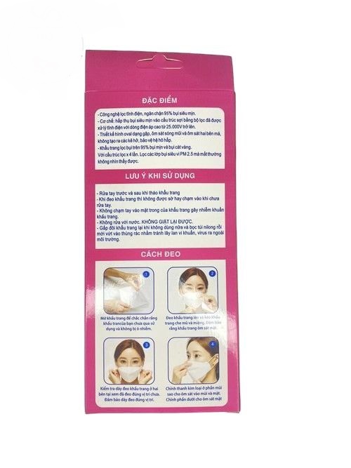 🛒 Thành phần: Nhiều lớp vải không dệt, có nếp gấp, lớp vi lọc, thanh nẹp mũi và dây leo
