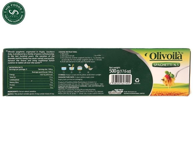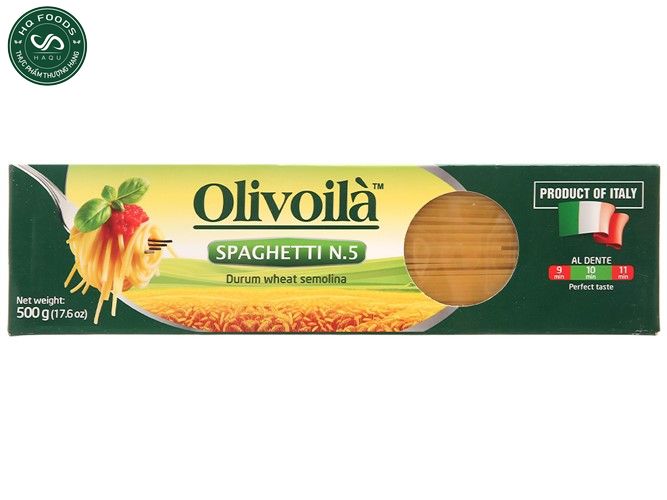 Mì spaghetti Olivoilà chất lượng, được làm từ lúa mạch cứng. Mì Spaghetti Olivoilà hộp 500g nên luộc từ 9-11 phút để đạt được sợi mì mềm và ngon nhất. Mì Spaghetti tiện lợi, làm mì sốt cà chua hoặc sốt với nước dùng yêu thích, cho bữa ăn tiện lời và dinh dưỡng
