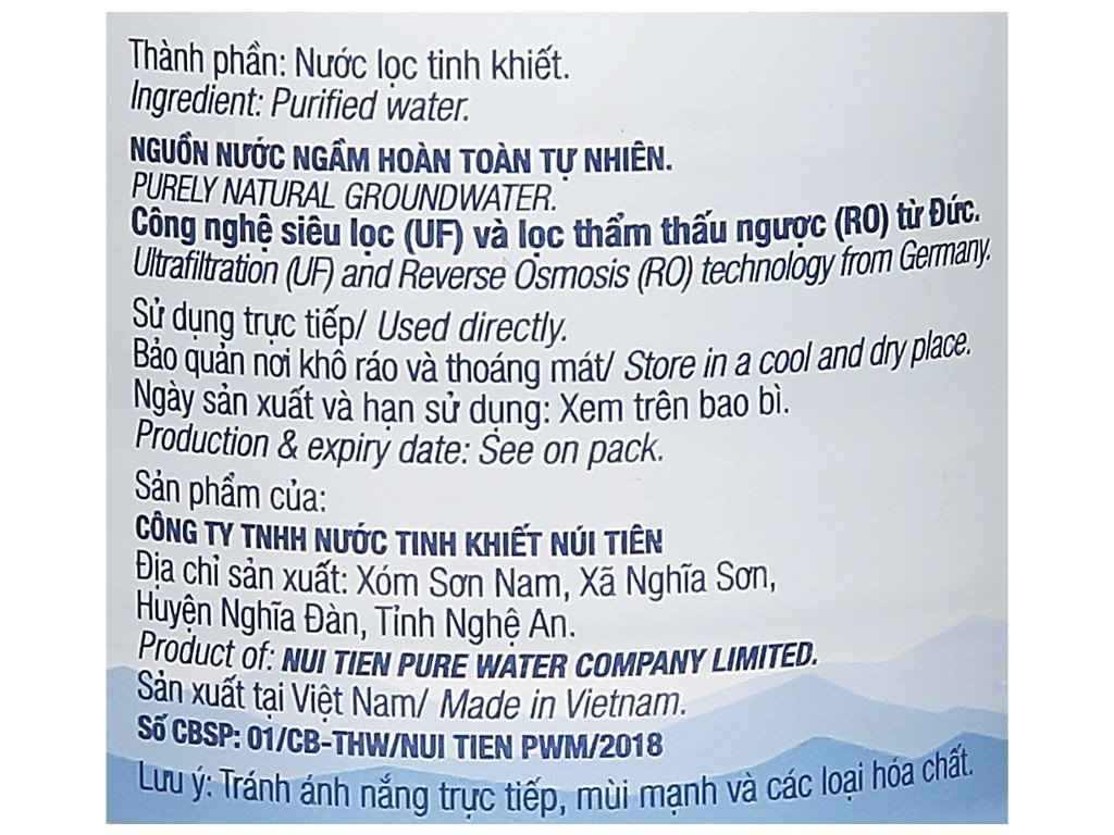 🛒 Thành phần: Làm từ mạch nước ngầm tự nhiên mát lạnh, tinh khuết với công nghệ lọc RO hiện đại nhất cho chất lượng nước hoàn hảo nhất