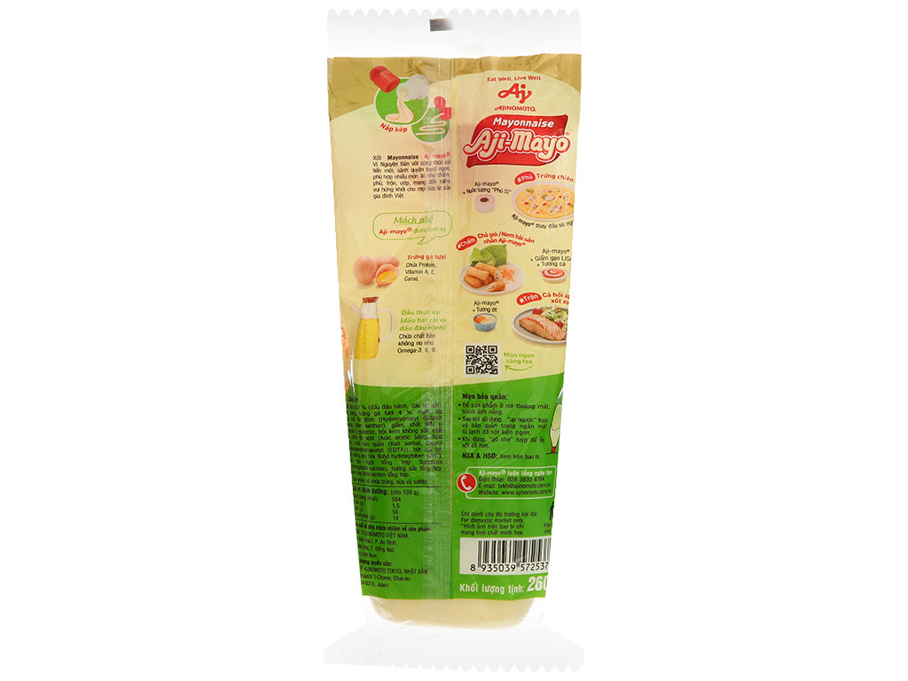 Thành phần: Dầu thực vật, nước, mạch nha, trứng gà tươi, đường, muối, bột trứng, giấm, chất điều vị, ...