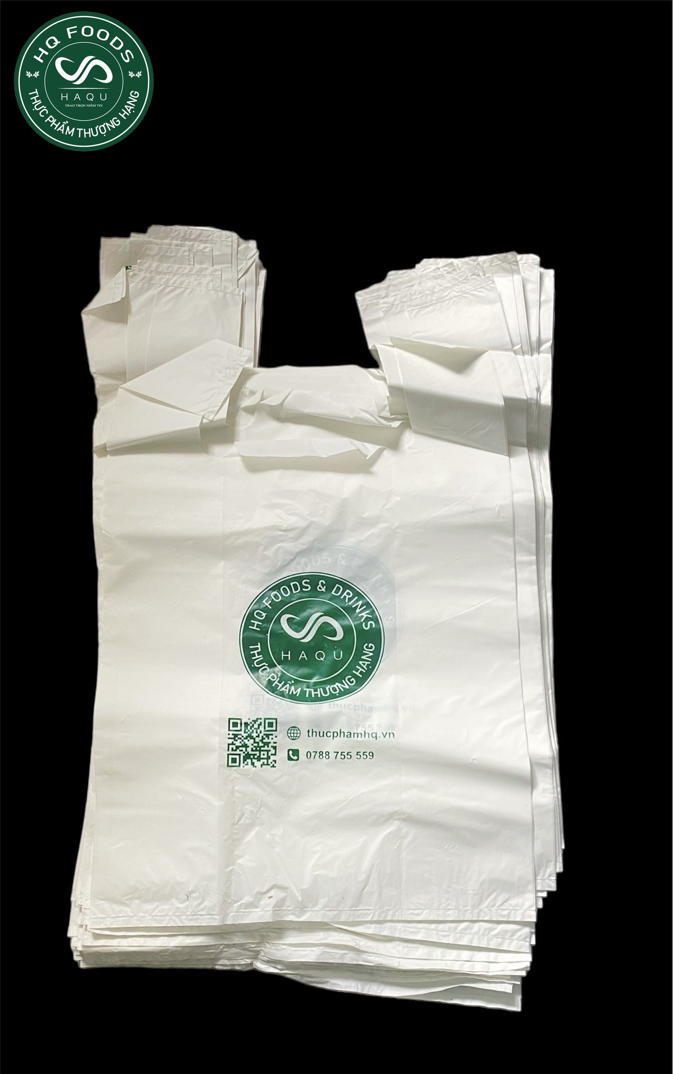 Túi nhựa trắng quai xách logo HQ 20 (200 túi/kg)