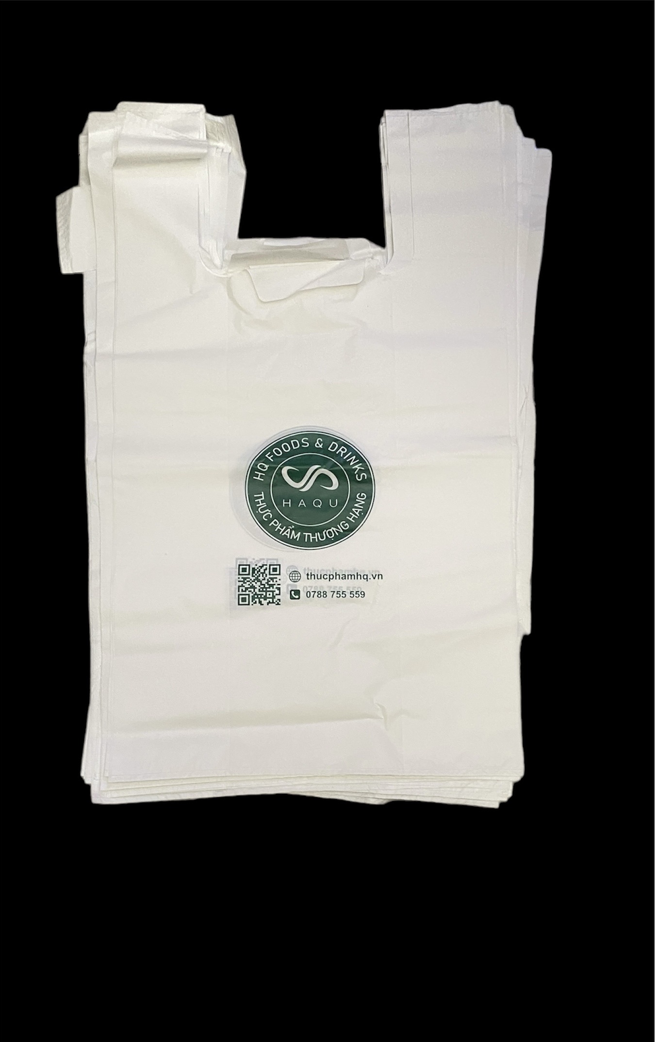 Túi nhựa trắng quai xách logo HQ 37 (38 túi/kg)